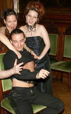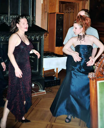 Nachdem am Abend zuvor das Mittelalter durchexerziert worden war, stand diesmal barocke Völlerei an. Dem Buffet wurde in einem Tempo der Garaus gemacht, als sei der Tag eine Feldübung gewesen. Schon bald erschallten ungewohnte Klänge durch die ehrwürdigen Hallen des Schlosses der im tapferen Kampfe gegen die Franzosen gefallene Burgherr rotierte sicher in seinem Sarkophag, als Mylene den Saal übernahm, gefolgt von diversen weiteren Minnesängern mit ähnlich verderblichem Liedgut. Auch sonst rotierte so einiges, und spätestens als die volkseigene Wasserpfeife ins Spiel kam, war endgültig alles am Drehen.